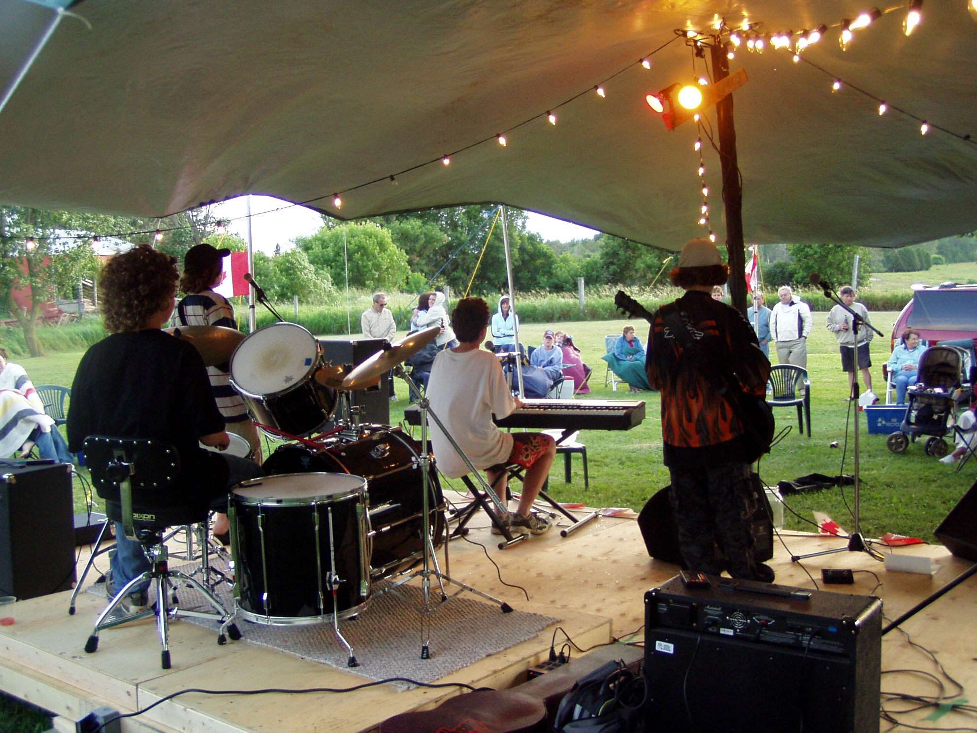 Woodcock residence, Peterborough Immortality provided the musical entertainment at a family gathering honouring the birthday of Tony and Tony's sister Laurie. Mother nature literally blew the house (outdoor shelter) down in between set one and set two, so for the balance of the evening the band was set up in the dining area! A great time was had by all. |