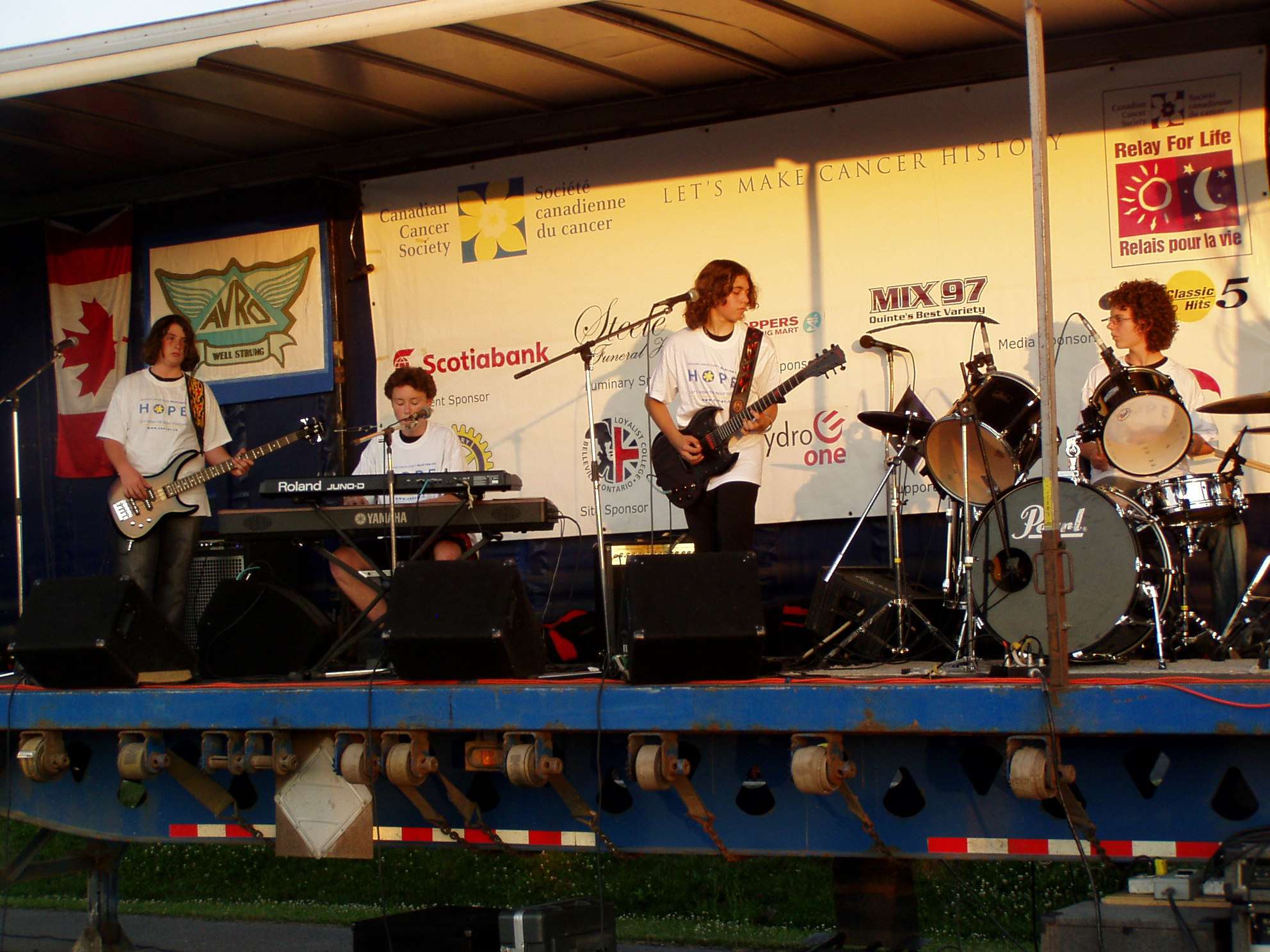 Loyalist College, Belleville Immortality provided part of the musical entertainment for the Canadian Cancer Society "Relay for Life" event. The band was pleased to be part of a tremendous event. Set List Look Before You Leap (Immortality) Bloody Well Right (Supertramp) What I'm Looking For (Immortality) Your Time is Gonna Come (Led Zeppelin) Fortune's Hand (Immortality) Dream On (Aerosmith) With You I Am Complete (Immortality) Locomotive Breath (Jethro Tull) Only Wants to Be With You (Immortality) Feeling Alright (Joe Cocker) In a Room With No View (Immortality) Encore What'd I Say (Ray Charles) |