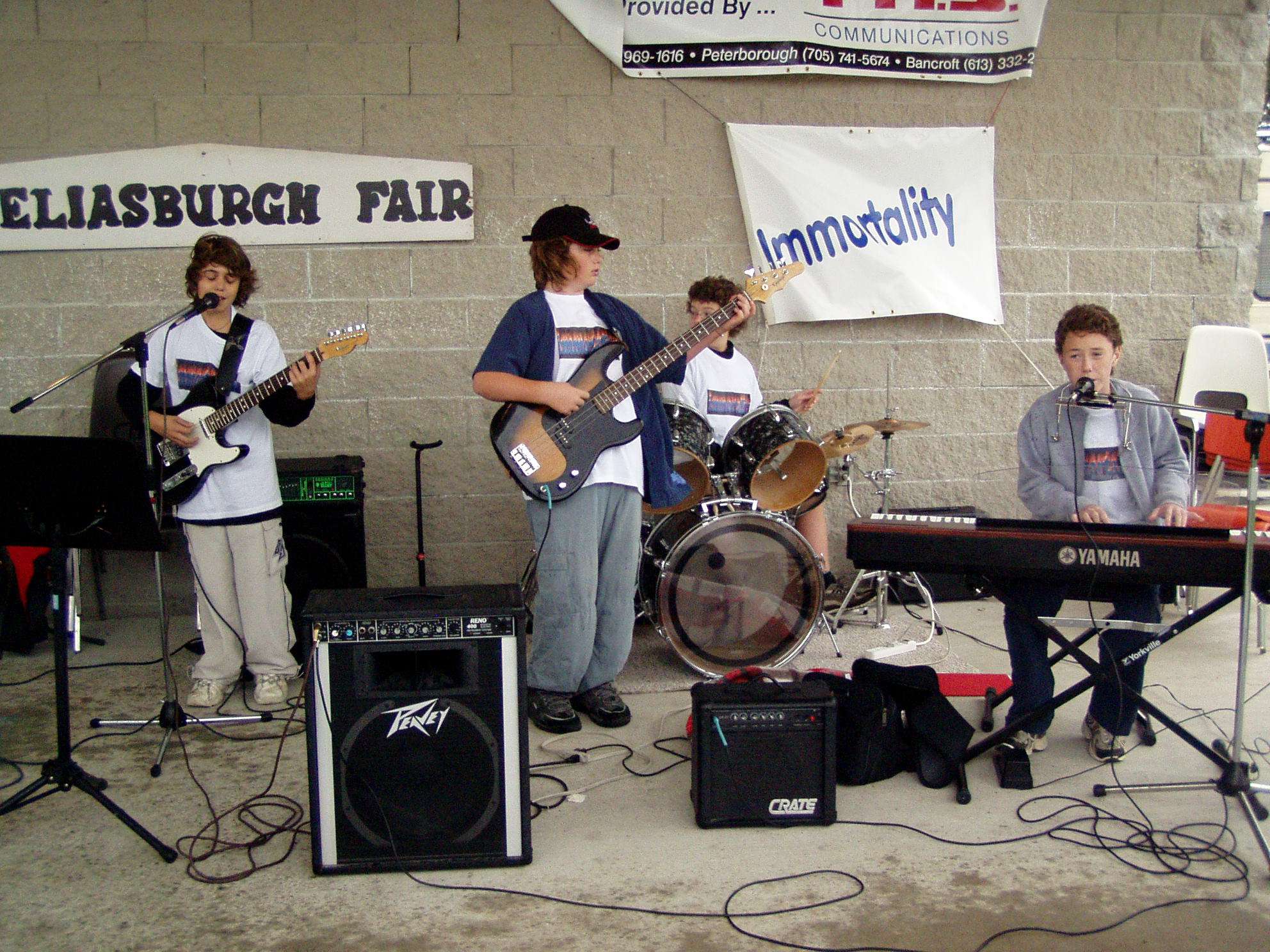 Ameliasburgh Fair Immortality was asked to play at the Ameliasburgh Fall Fair. They played through a rain storm but persevered and played well to a small dedicated audience. They played a 12 song set over a 45 minute time frame. The band lineup had changed - Dean LeBlanc had taken over the lead guitar duties and also contributed as a second vocalist, while Zac Shunock now played the bass guitar. Set List