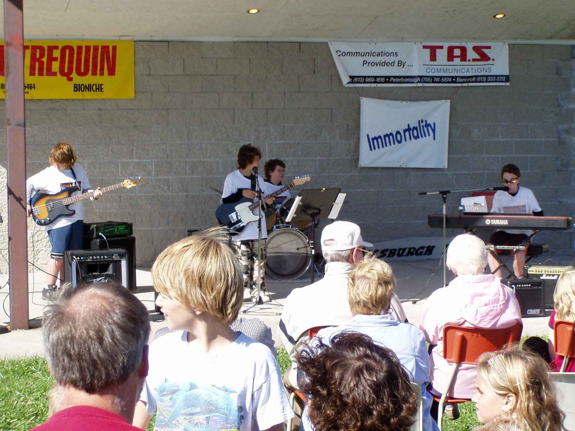 Ameliasburgh Fair Immortality returned to the Ameliasburgh Fall Fair on Sunday to play to an enthusiastic audience enjoying the sunshine. They still had to contend with some wind but had a very successful outing. Set List Helpless (Neil Young) Politik (Coldplay) Don't Ask Me No Questions (Lynyrd Skynyrd) Amsterdam (Coldplay) The Reason (Hoobastank) Clocks (Coldplay) Let It Be (The Beatles) Sweet Home Alabama (Lynyrd Skynyrd) Harvest Moon (Neil Young) Old Time Rock 'n Roll (Bob Seger) Werewolves of London (Warren Zevon) Yellow (Coldplay) |